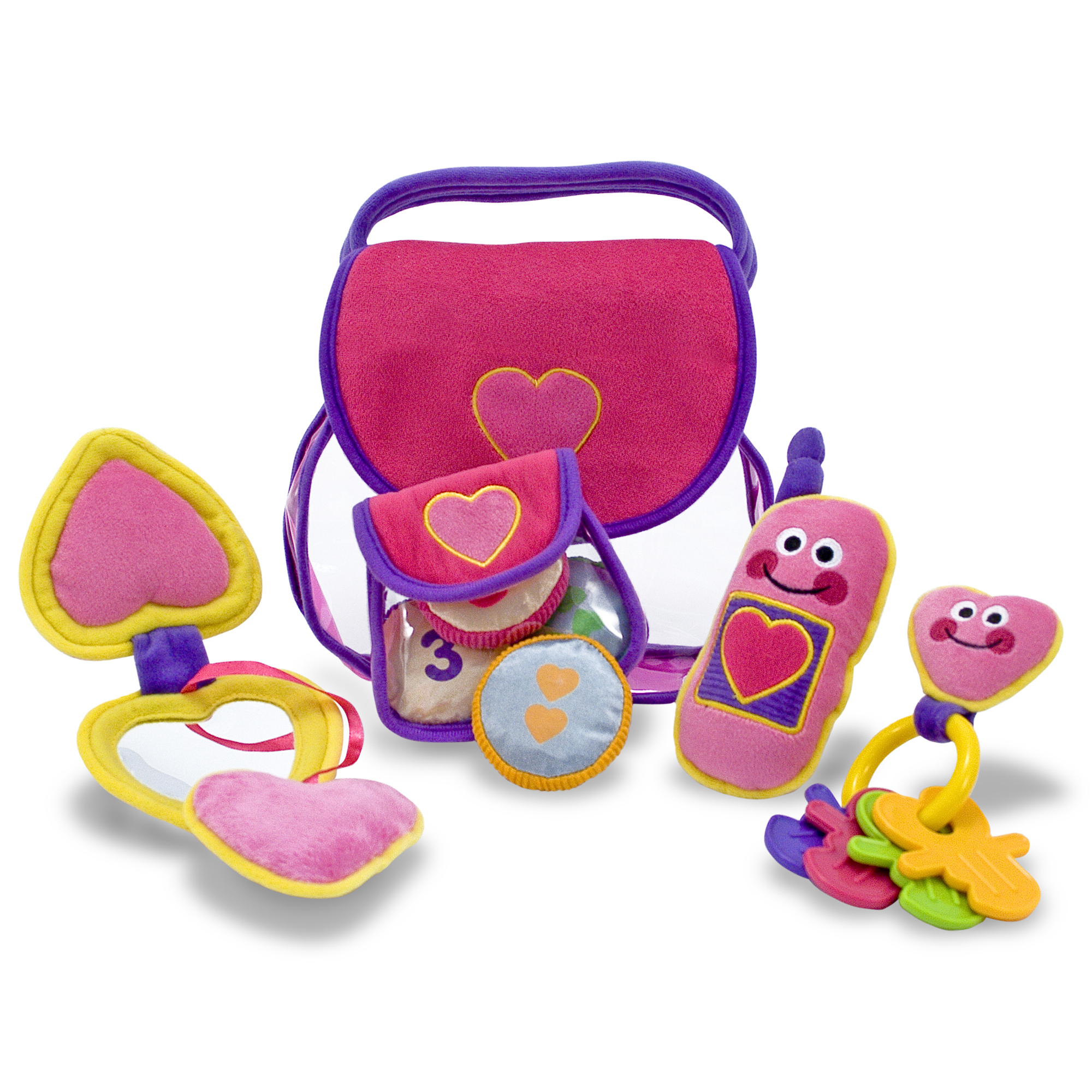 Включает в себя мобильный телефон, брелок с ключами, кошелек с монетами, и компактнное безопасное зеркало, кошелек с ручкой
