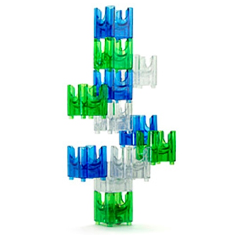 Детали конструктора похожи на красивые стеклышки цветных бутылок, приятное сочетание зеленого, синего и прозрачного расслабляет и успокаивает.