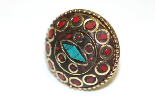 (латунь с крошкой бирюзы и коралла диаметр 2,5 см размер регулируемый)